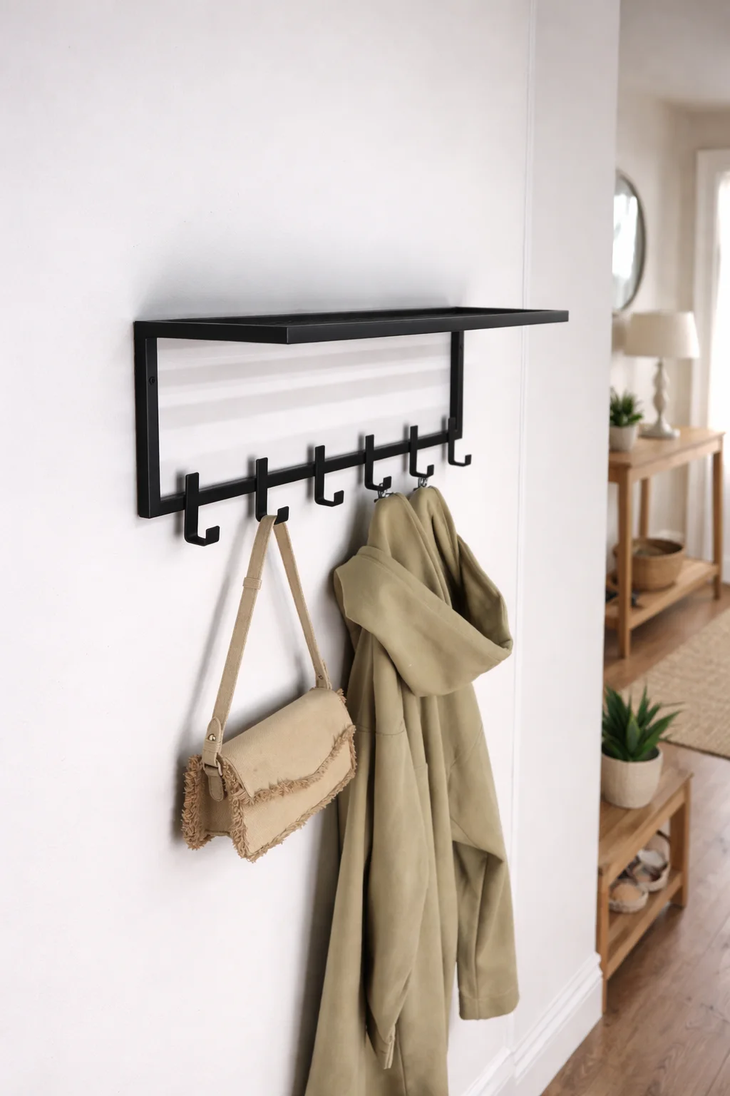Le Porte-Manteau Mural Design avec Étagère combine élégance moderne, fonctionnalité intelligente et solidité premium pour offrir une solution parfaite aux espaces modernes.